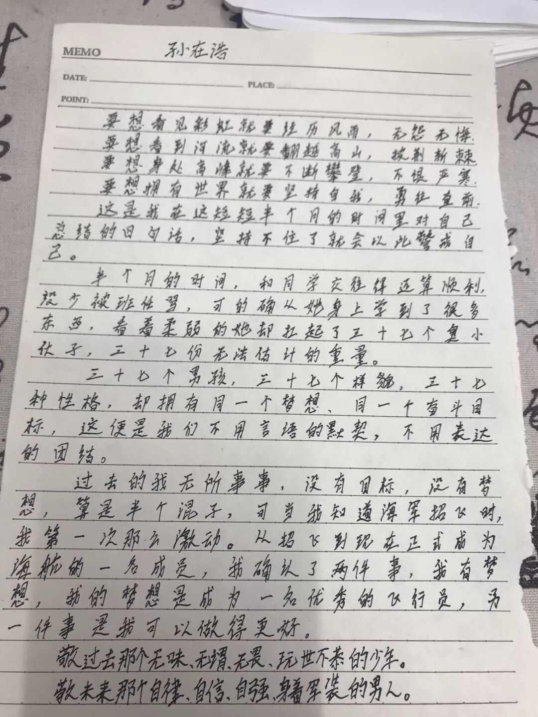 從他們報道(dào)迄今16 天,海航學員迅速成長,相比同齡人(rén),他們已經走在獨立生(shēng)活的道(dào)路上(shàng),在學習磨砺中成長,更加懂得(de)親恩、師(shī)恩;